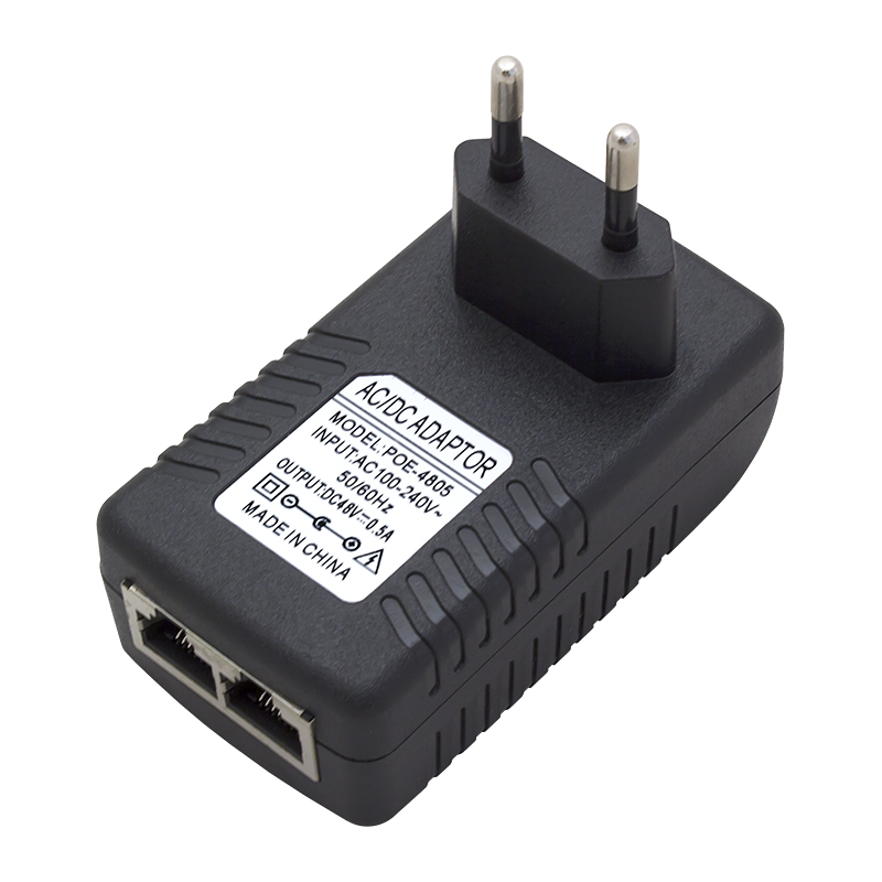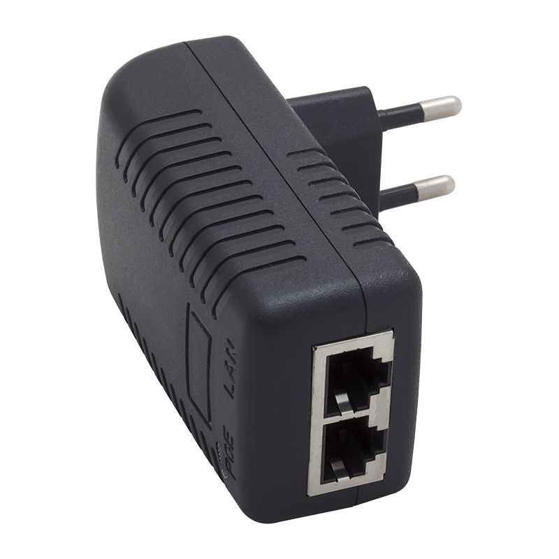 Инжектор питания PoE (48В 0,5А) подает электропитание на сетевые устройства через кабель Ethernet, совмещая передачу данных и энергии.