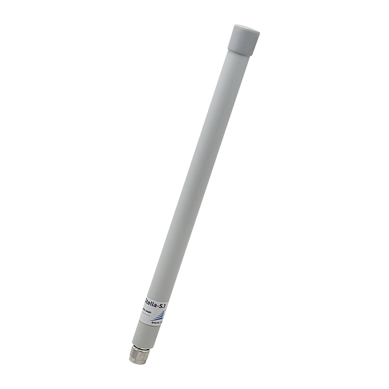 - N-вилка для прямого подключения. Антенна фиксируется на приборе путем накручивания на гнездо, что избавляет от использования дополнительных кабелей и крепежных аксессуаров. Небольшая масса (около 160 г) не создает избыточной нагрузки на оборудование. Для установки на кронштейн/трубу предусмотрена альтернативная версия — Stella-5 с креплением-скобой;