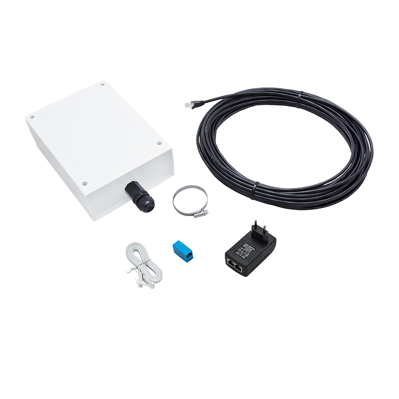 - Питание через Ethernet-кабель. Технология Passive PoE позволяет передавать питание и данные по одному кабелю, что упрощает установку и организацию кабельных линий. При помощи комплектного инжектора система подключается к обычной электрической розетке. В комплект входит кабель 20 м, максимальная длина кабельного сегмента — 100 м;
